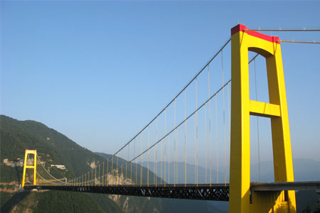 湖北四渡河特大橋全長(zhǎng)1100米,主跨900米,被譽(yù)為世界第一高懸索橋。...